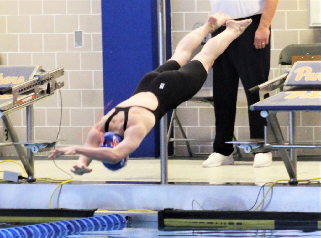 Mount PleasantĢƵ Heather Gardner flies off the block at the start of the 50 freestyle in 2020 WPIAL Class AA Swimming Championships. The senior won her third-straight gold medal in the event, but GardnerĢƵ quest to win her first state gold medal was put on hold with the suspension of all PIAA championship activity for at least two weeks.