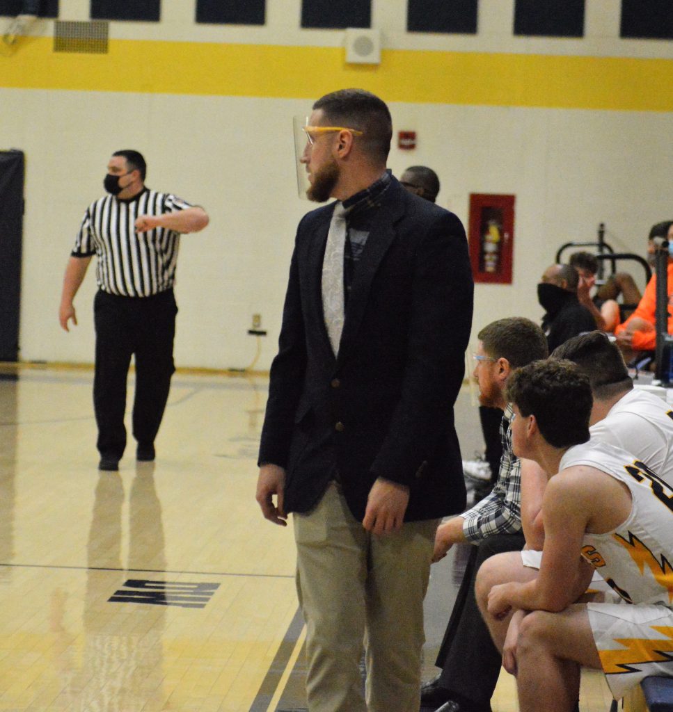 Carmichaels coach Ian McCombs watches his team play Jefferson-Morgan during a game last season. McCombs is entering his third season with the Mikes.