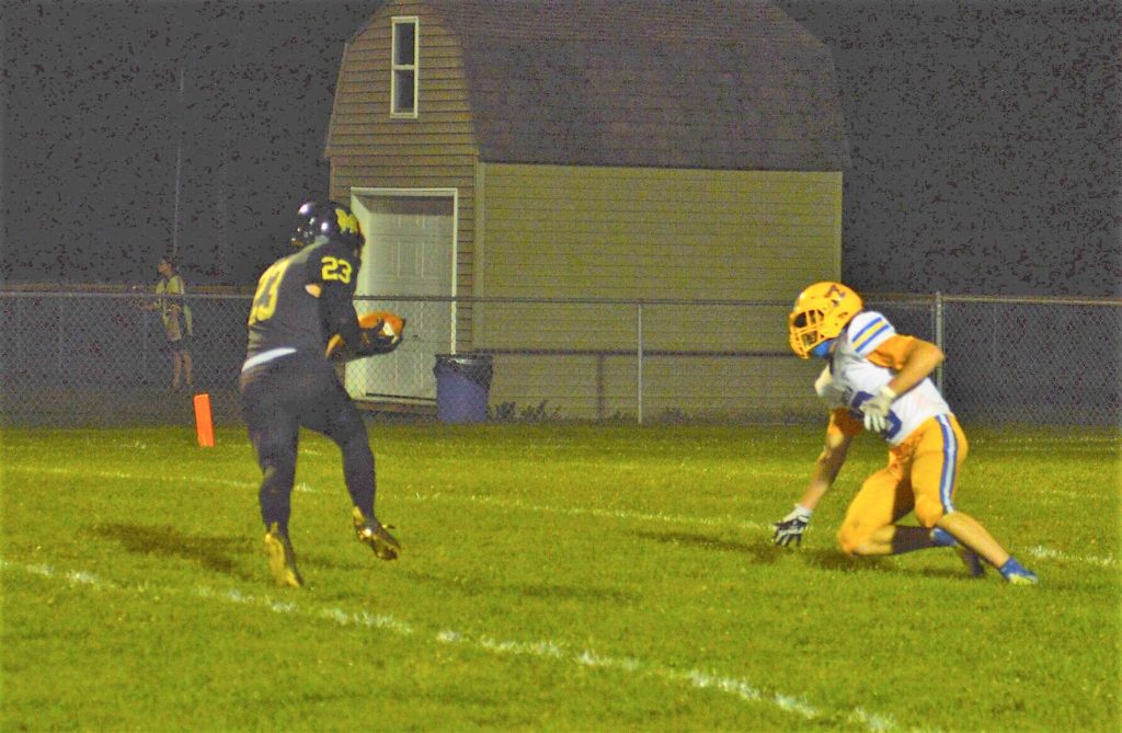 After StevensonĢƵ first TD, MapletownĢƵ Cohen Stout gave his team a 9-0 lead when he tackled AvellaĢƵ punter in the end zone for a safety following a high snap.