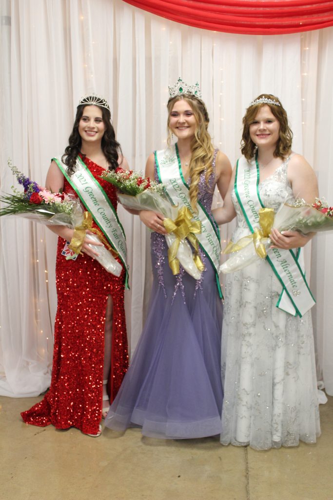 Talia Tuttle of Sycamore (center) was named the 2022 Greene County Fair Queen last weekend. She is standing with the 2021 Greene County Fair Queen Krysten DeBolt (left) and 2022Ä¢¹½ÊÓÆµ first alternate, Madyson McDonald (right).