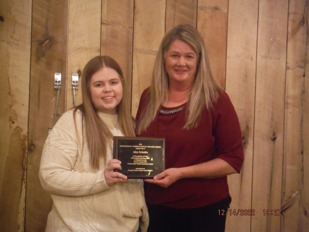 Alex Shultz, a 2022 graduate of Waynesburg Central High School, was recognized for her speaking skills for her speech, “Cover Crops: Why are they Important?” Shultz won the 2022 conservation speaking contest.