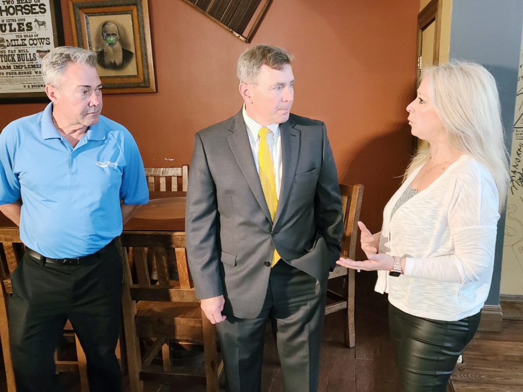 Michael and Lori Coury, pictured in June with state secretary of the Department of Community and Economic Development Dennis Davin, center, discuss how their Charleroi restaurant weathered the pandemic.