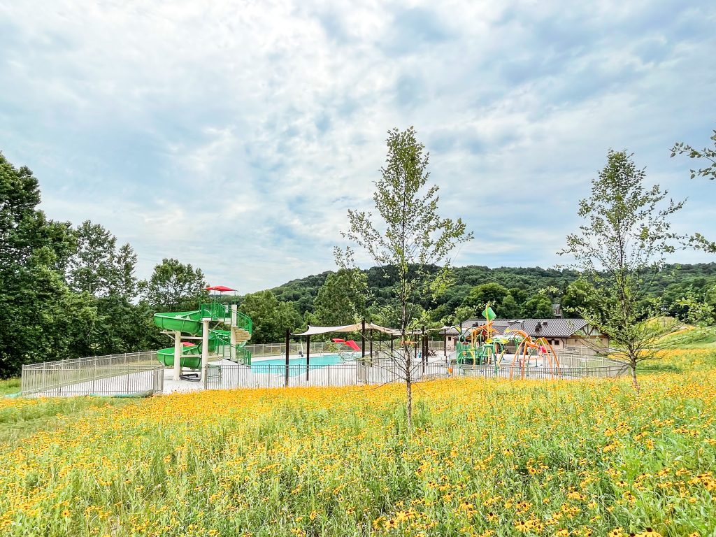 You round a bend along the winding road and catch your breath as a field of black-eyed Susans appears before you. Just beyond the sea of orange wildflowers, water sprays from twisty tubes and giant daisies, and a zero entry pool invite visitors to Ryerson Station State Park to cool off.