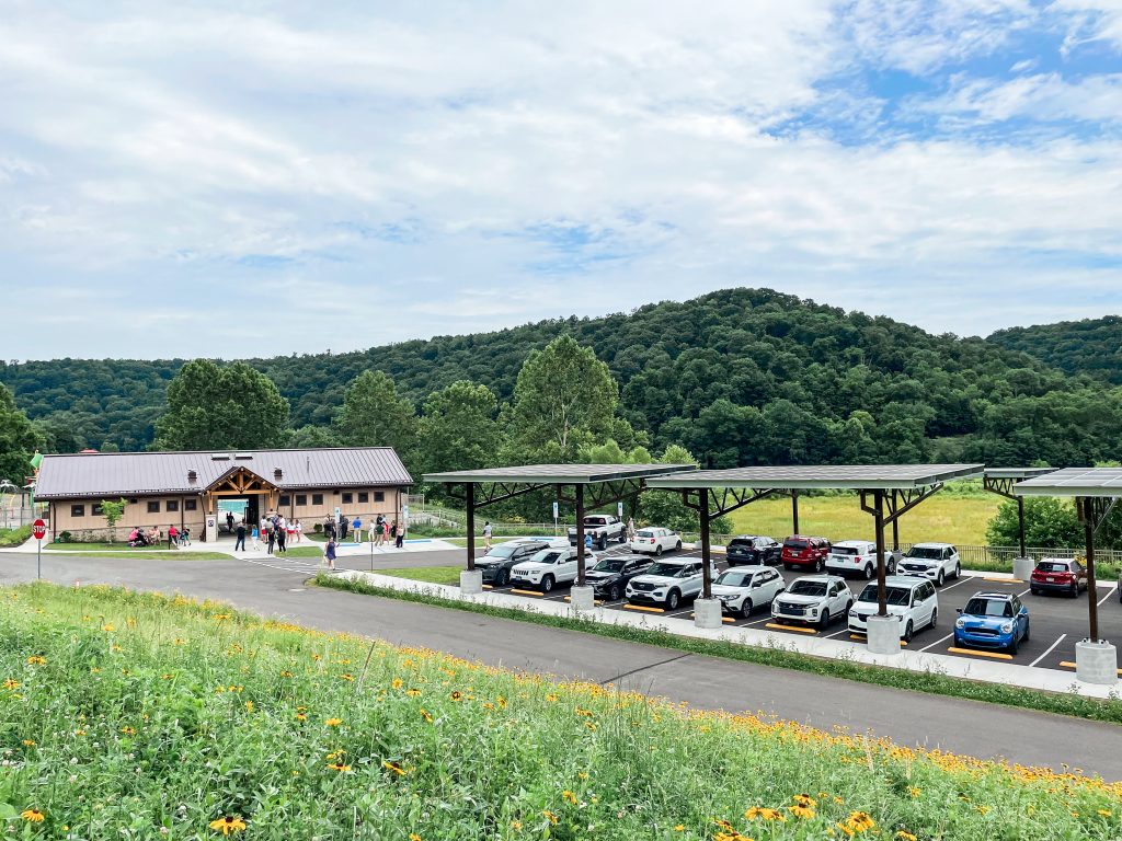 The parking lot (which sits where the former pool once gleamed in afternoon sunlight) is covered in a solar canopy, which keeps cars cool while folks splash the day away. The solar canopy is the first of its kind to be installed in a state park.