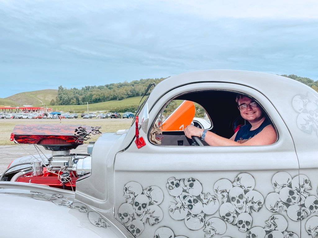 Jacob Rendos, 19, also thrilled at racing his custom 1941 WillyĢƵ Coop. Rendos and his father built the Coop, which sports a skull paint job and accessories.