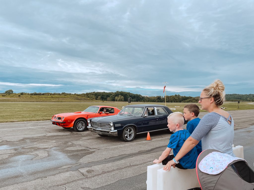 For Heather Johnson, of Spraggs, watching her kids is nearly more fun than watching the cars zoom past.