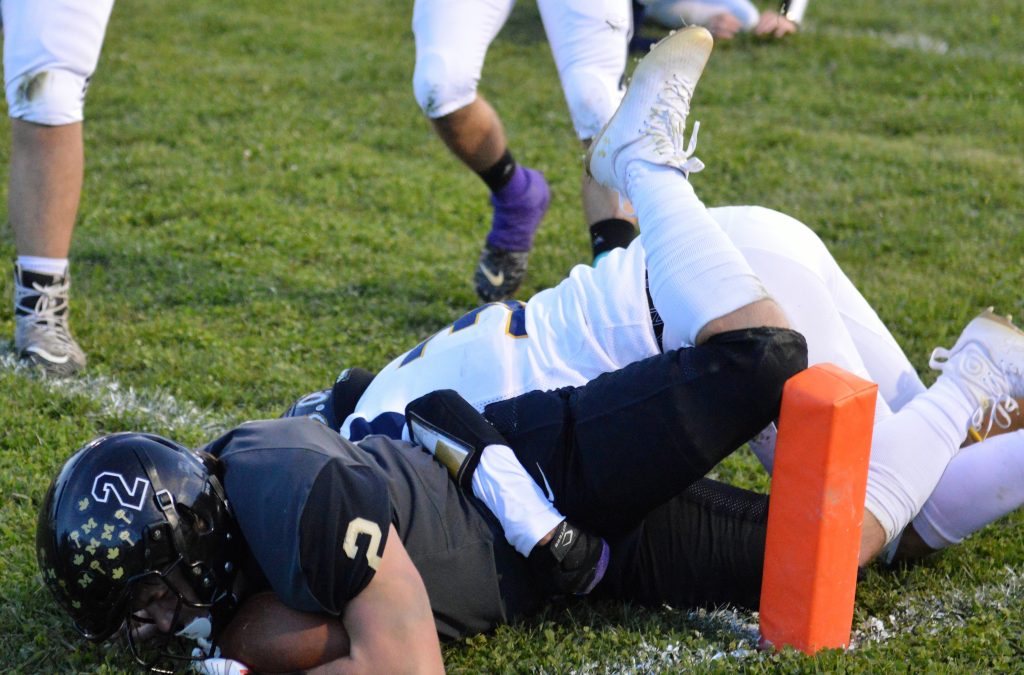 MapletownĢƵ A.J. Vanata dives into the end zone for a touchdown in the first quarter of Friday nightĢƵ game against Carmichaels at Mapletown.