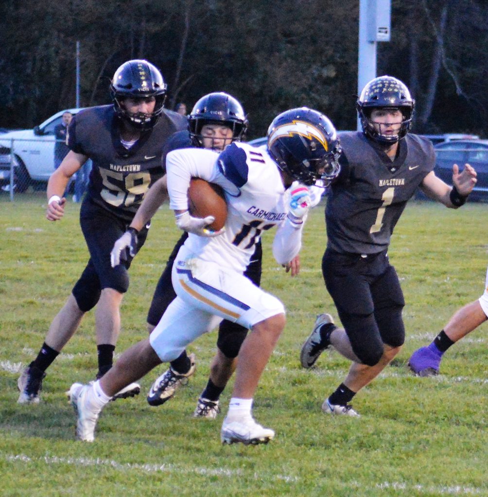 Carmichaels’ defense did do better in the second half, but Mapletown still found ways to score. Vanata had a 12-yard touchdown run in the third quarter, and Stevenson had a 10-yard touchdown run in the fourth.