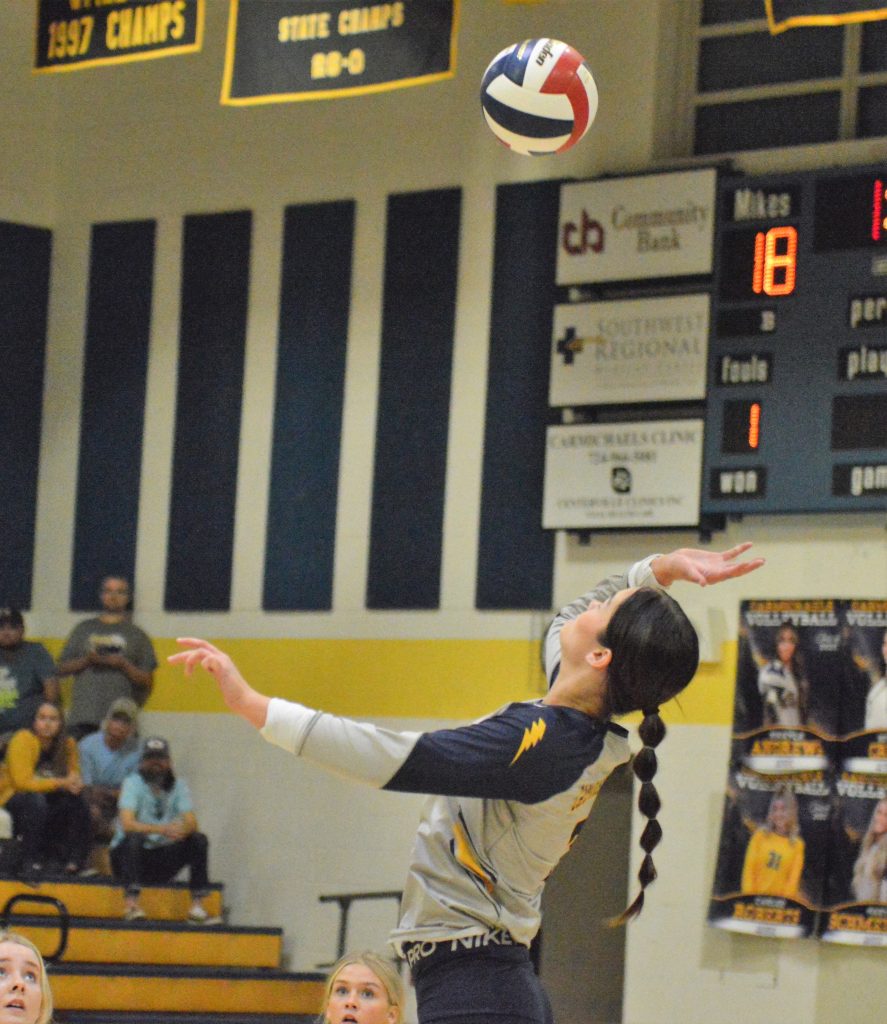 Ellsworth and Beth Cree, who had 18 kills and 15 digs, led the way for the Lady Mikes who also got 10 kills and five blocks from Sophia Zalar, 17 digs and 15 service points from Carlee Roberts, 10 blocks from Ani Cree and two blocks from Mary Schmelzlen.