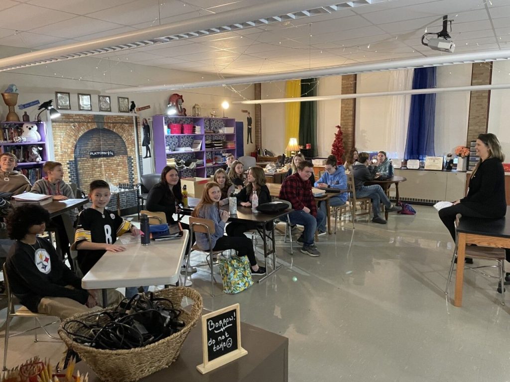 Junior high classes are on the second floor and high school classes are on the main floor, with some crossover between students.