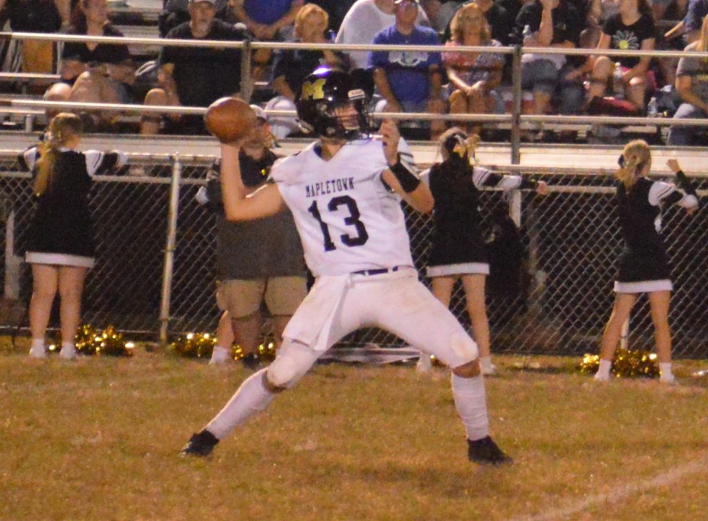 Brock Evans led Mapletown with 13 carries for 61 yards but Maples running back Carson Vanata suffered a third-quarter leg injury that knocked him out of the game. Colton Spitznogle had 6.5 tackles.