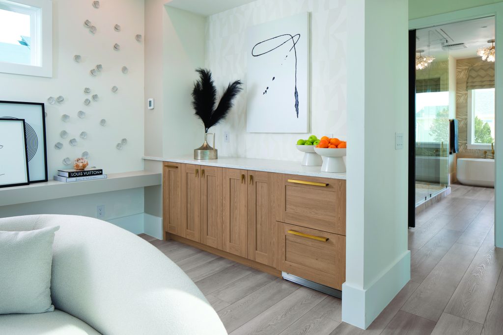 If you fear you don’t have room for a mini bar, you may be surprised. Reimagining a larder cabinet, like the ones Wellborn Cabinet, Inc. offers in 30-, 33-, 36- and 42-inch widths, can create an instant bar out of just about any wall space where you can fit a cabinet. Install it as a coffee bar or traditional bar, or add the optional Appliance Pullout shelf for more versatility.