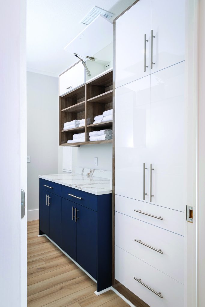 Getting motivated to do chores like laundry is easy when you have a beautiful setting for getting to work. Introducing pops of color in nontraditional places, like the cabinetry, adds a high-end elegance. Water-inspired and earthy hues like Midtown Matte Tidewater or Arcadia Chiffon Cypress are perfect for the laundry space. Both are options in Wellborn Cabinet, Inc.Ä¢¹½ÊÓÆµ Aspire Series, which features concealed hinges with self-close functionality and matching interiors for a high-class look, even when the doors are open for business.