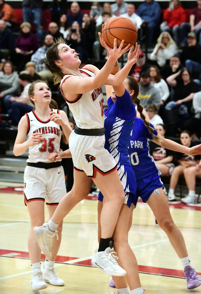 WaynesburgĢƵ Avery Davis countered with a three, but Ella CliffordĢƵ long-range shot for three of her seven points in the second quarter provided South Park with a 19-16 lead. Clifford made two more baskets for a 23-21 halftime advantage.