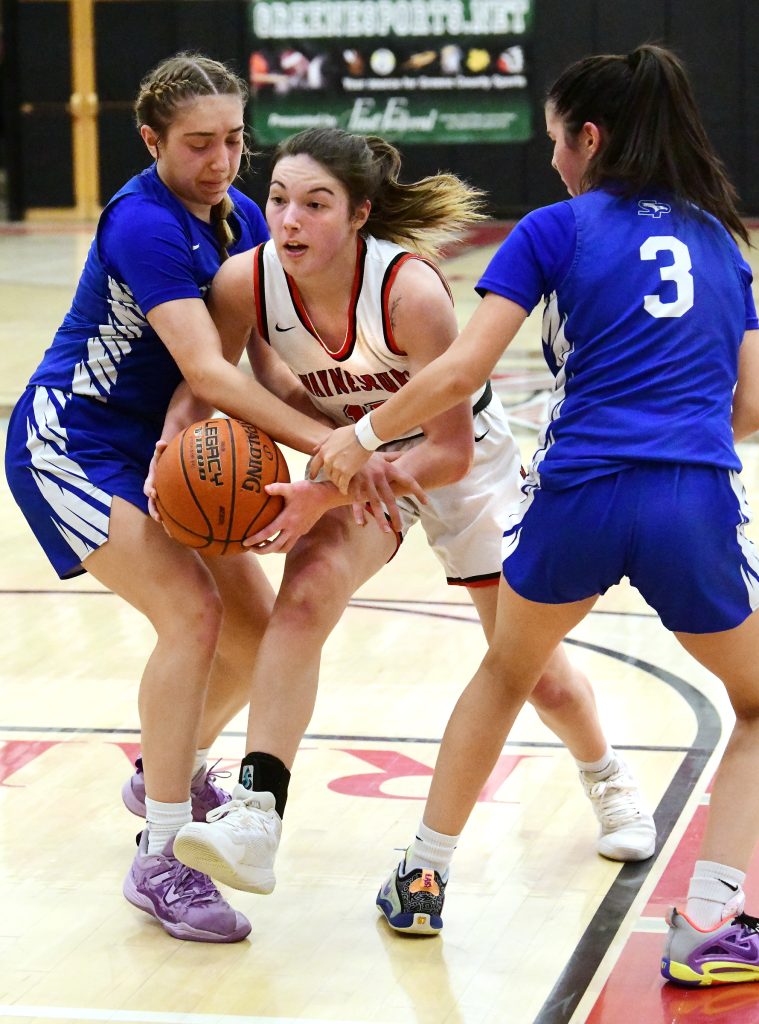 WaynesburgĢƵ Josie Horne made a three-pointer in the final minute, but the Eagles had enough of a cushion to leave Greene County with a victory.
