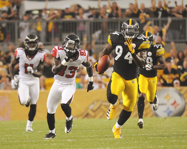 PittsburghĢƵ defense, which harassed PhiladelphiaĢƵ Michael Vick into three picks last week, wasn’t quite so dominant trying to contain AtlantaĢƵ versatile and high-powered offense.