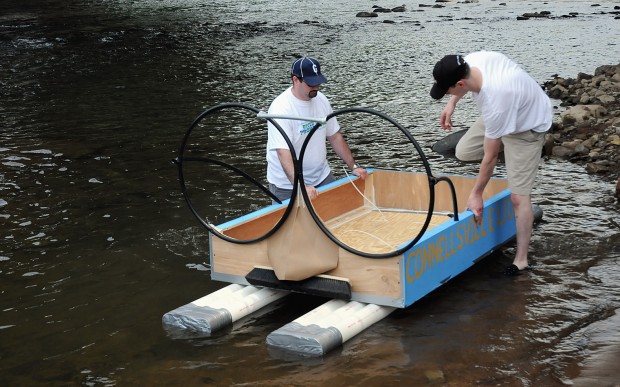 Afterwards, onlookers gathered on the shoreline to watch the New Haven Hose Volunteer Fire Co. and the Connellsville Lions Club exhibit their talents in boat construction.