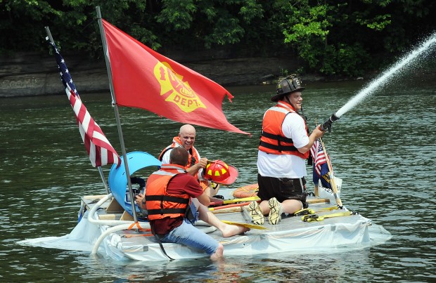 With only two submissions for the ‘anything that floats contest,’ the fire department entry awaited the Lions Club boat being commanded by Councilman Brad Geyer.