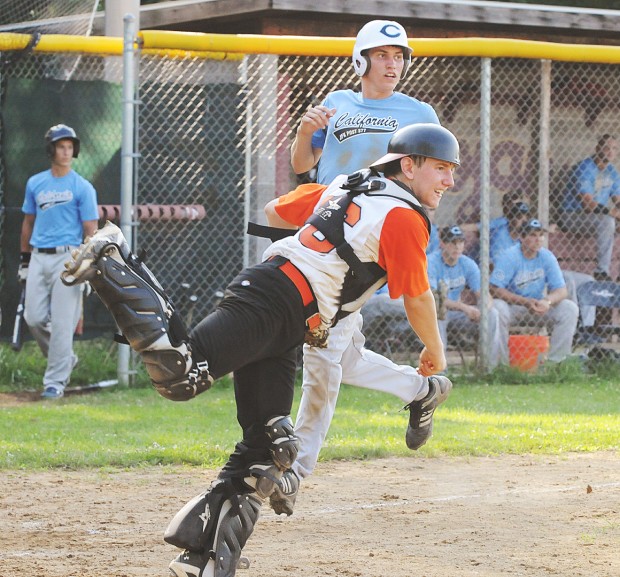COAL CENTER — Tyler Delval threw a shutout, and helped himself with a two-run home run in the third inning as California took a leap toward a spot in the Fayette American Legion Baseball League finals with a 12-0 victory against Farmington.