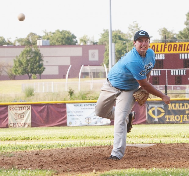 ?COAL CENTER — Tyler Delval started the season as a relief pitcher for the California American Legion team, but he came on strong as a starter as the season progressed, and tossed a five-hitter on Tuesday as California downed Uniontown 4-1 to take a 1-0 lead in the best-of-three series to decide the Fayette County championship.