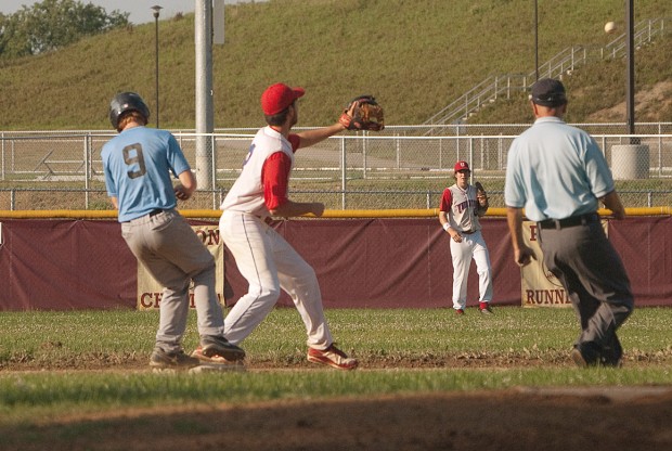 Uniontown got Patricelli to third base with two outs in the seventh and had Jake Riddell at third with two outs in the eighth, but Delval got a fly out to end each inning.
