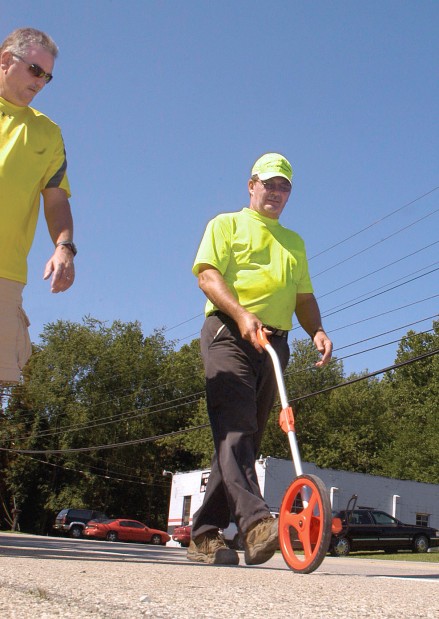 Professional engineer Pat M. Wright of the state Local Technical Assistance Program (LTAP), township supervisors Bob Carson and Tom Cesario and Julie Peters, Fayette EMS assistant chief, traversed the areas of concern several times to measure distances, take photographs and note the amount of traffic to determine a solution to curb the number of accidents at the East Blake and East Crawford Avenue intersection.