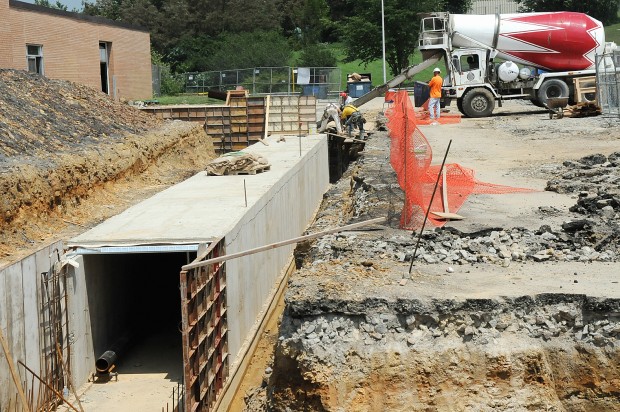 The focus on Friday was to complete an underground utility tunnel that stretches along the rear of the high school parking lot. The tunnel provides an alternative to removing terrazzo flooring and interior walls to take out the antiquated heating and plumbing utility lines, said Pappas.