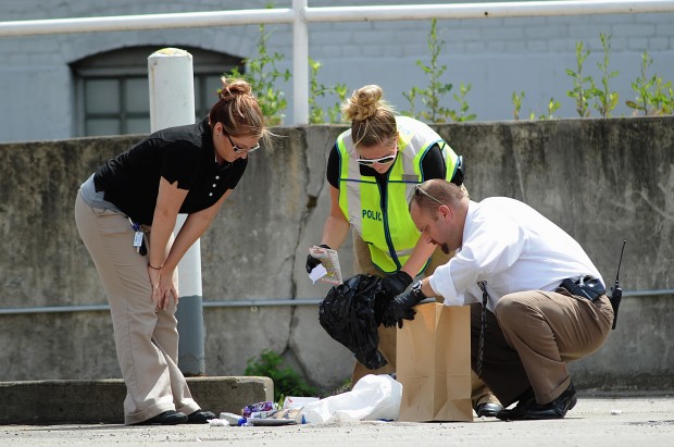 Capt. David J. Rutter said police were alerted to the suspicious item inside the waste container at the service station at the corner of Morgantown and Fayette streets. The item was described as two pop bottles joined together and filled with some type of liquid, with a powdery substance in between the bottles.