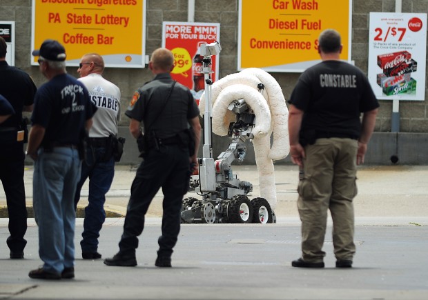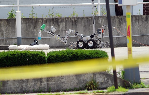 The bomb squad arrived at the scene shortly after 2?p.m. and deployed a robot to retrieve the item.