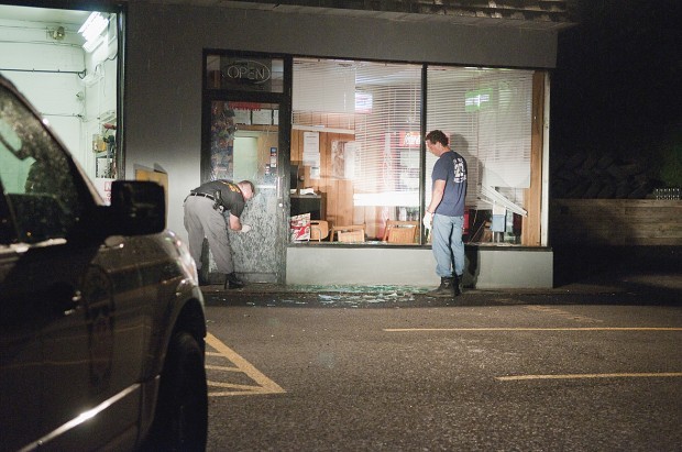 Brown said when police arrived they found the front windows of the business shattered and debris littering the parking lot.