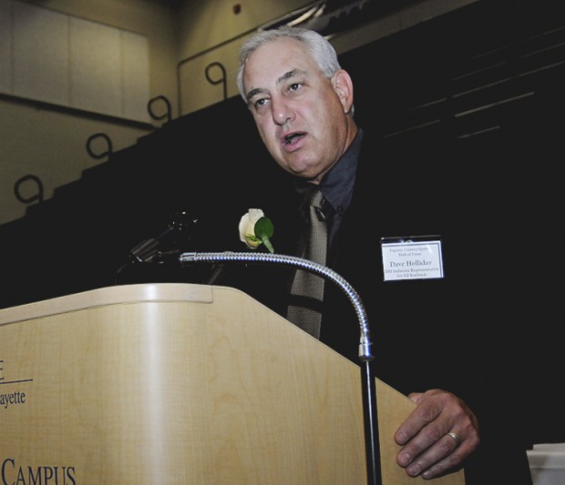 Dave Holliday spoke on behalf of Brownsville baseball standout Ed Roebuck, who went on to play for the Dodgers in Brooklyn and Los Angeles, along with the then-Washington Senators and later the Philadelphia Phillies. Holliday and Roebuck became good friends as baseball scouts when they both discovered their ties to Fayette County.