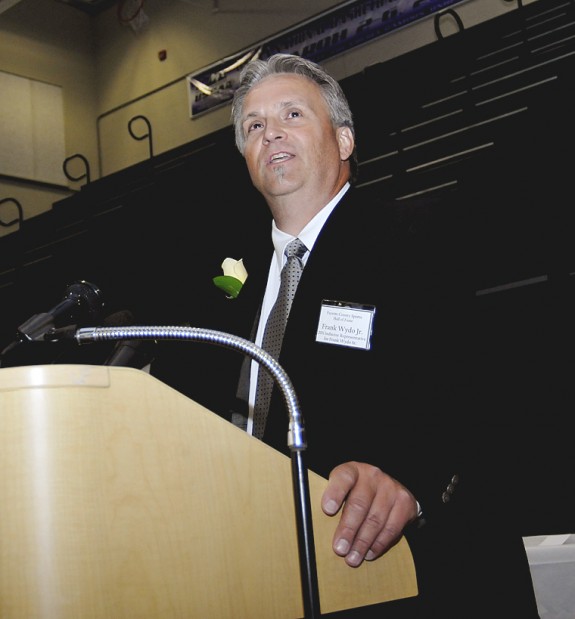 Frank Wydo was inducted posthumously and his son, Frank, spoke of how “there is no greater honor than to have former students, players and teachers come up to me and tell me what an influence my dad was on their lives and careers.” Wydo starred in football as a lineman at German Township, and played collegiate football at Duquesne and Cornell before playing in the National Football League with Pittsburgh and Philadelphia.
