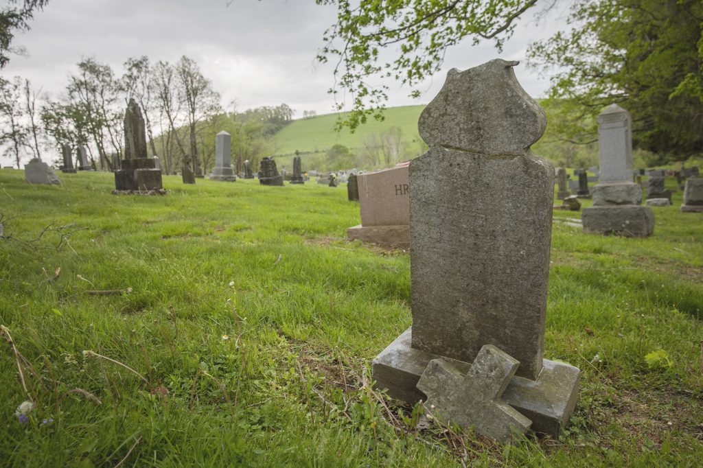 The cemetery is a part of St. Francis of Assisi parish in German Township. On April 14, Good Friday, a New Salem man allegedly drove through the yard of the parish, knocking over religious statues and throwing a bench at a shrine.