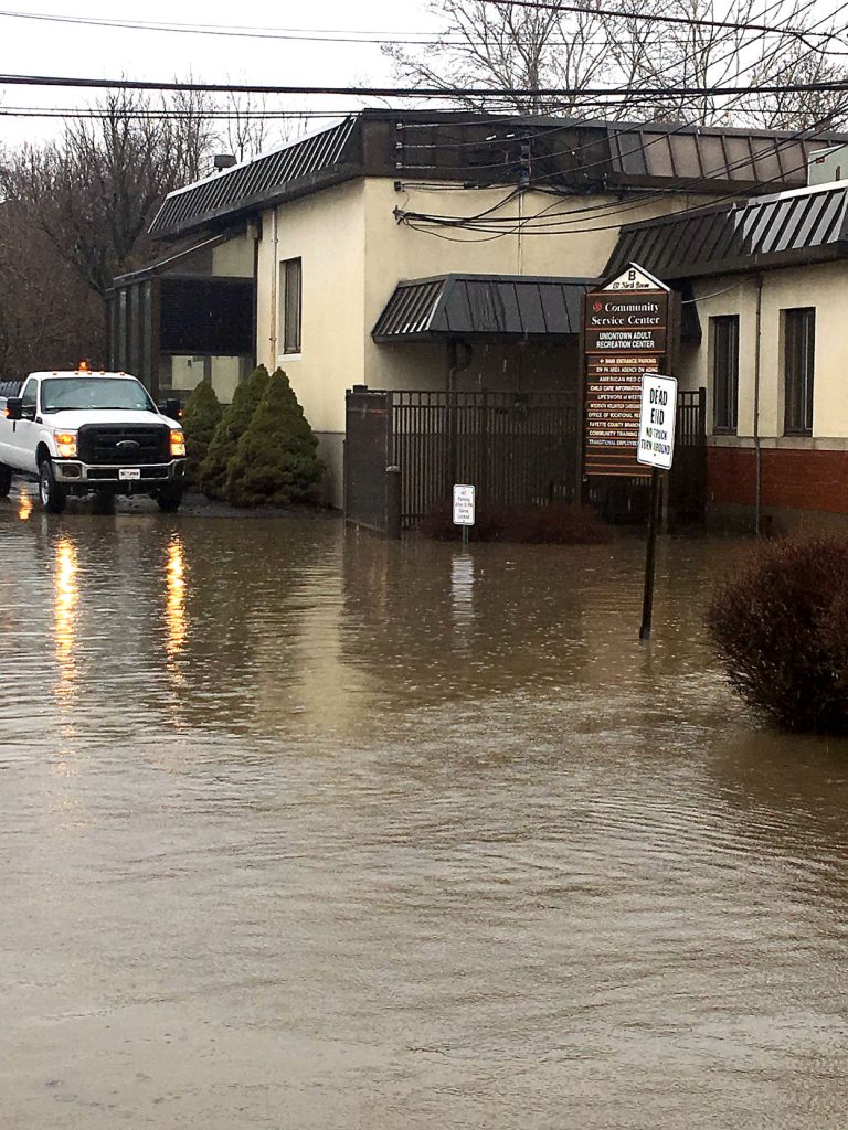 The Fayette County Community Action Agency closed early Tuesday afternoon as flood waters reached several feet in the area of North Beeson Boulevard and other parts of Uniontown.