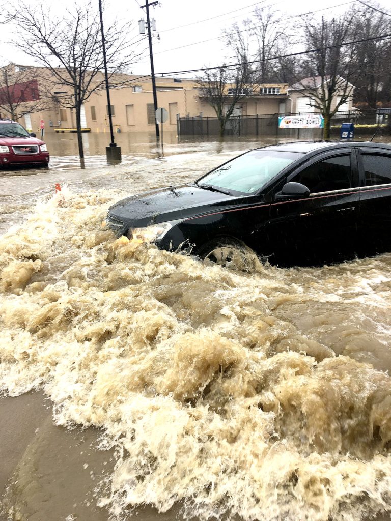A Fayette County 911 supervisor said they had received about six or seven flood-related calls by Tuesday afternoon, mainly concentrated to downtown Uniontown, near the Uniontown Post Office and Cinder Road. The calls were for roadway flooding and flooded basements. No injuries were reported.