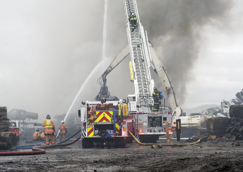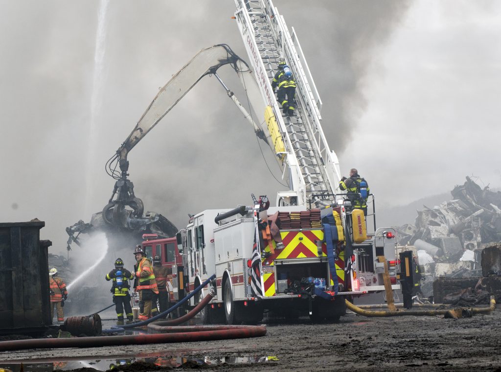 The state Department of Environmental Protection also responded to the scrap yard to look for runoff in nearby waterways, agency spokesman Neil Shader said. He wasn’t sure whether a full-scale investigation would be launched by the department.