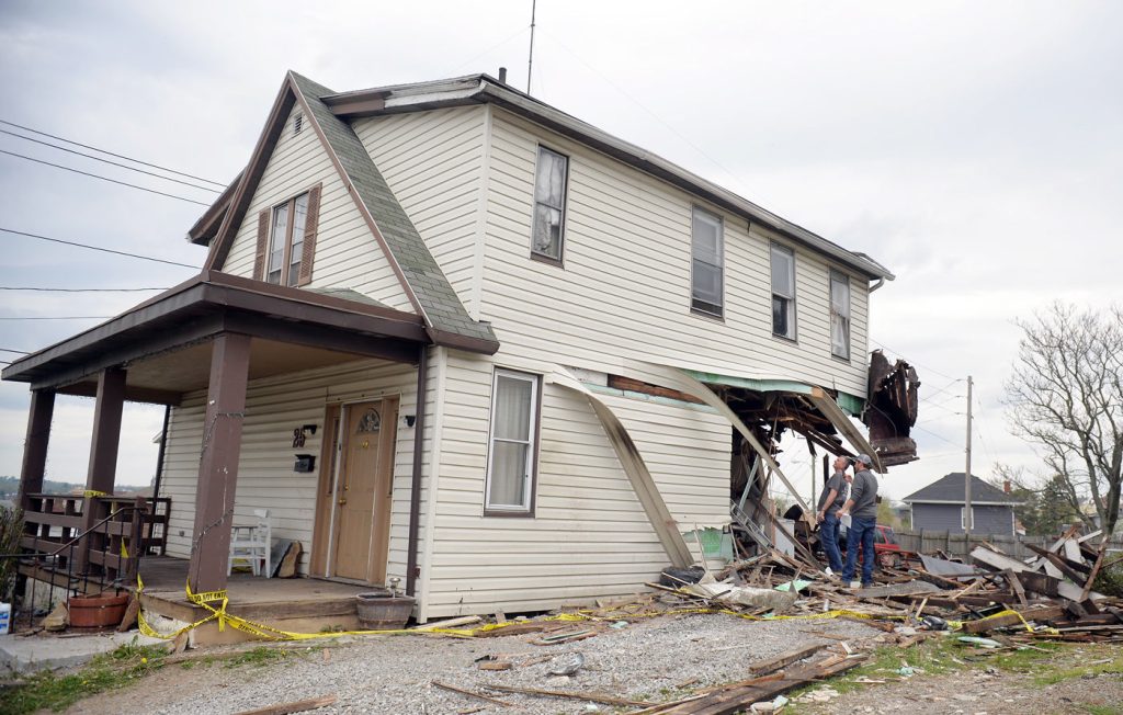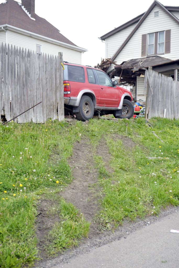 Driver Richard “Rocky” Crossland, 56, of Uniontown reportedly went airborne on a steep embankment at the intersection of Lincoln and Prospect streets at about 12:30 a.m. He was injured and extricated from the vehicle, then taken to Uniontown Hospital where a medical helicopter flew him to a trauma center. Uniontown City Police said he drove through the back yard of 25 Prospect Street before ripping apart the rear of the home in the crash. His injuries are not believed to be life threatening, according to Uniontown City Police Lt. Tom Kolencik.