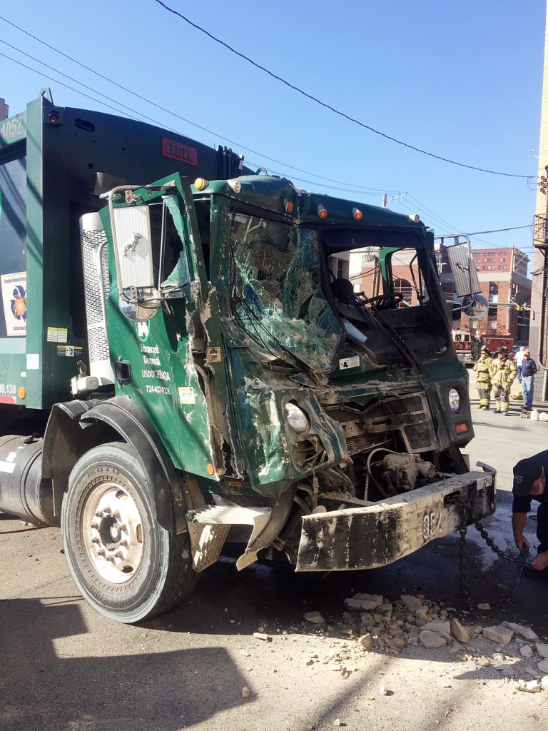 The garbage truck driver was parked at the top of a steep hill to pick up trash outside Fayette County Prison when it began rolling downhill at about 9:20 a.m. Both the driver and passenger were outside the truck. The driver told police he had the parking brake on. The truck will be inspected to determine whether any mechanical failures led to the crash.