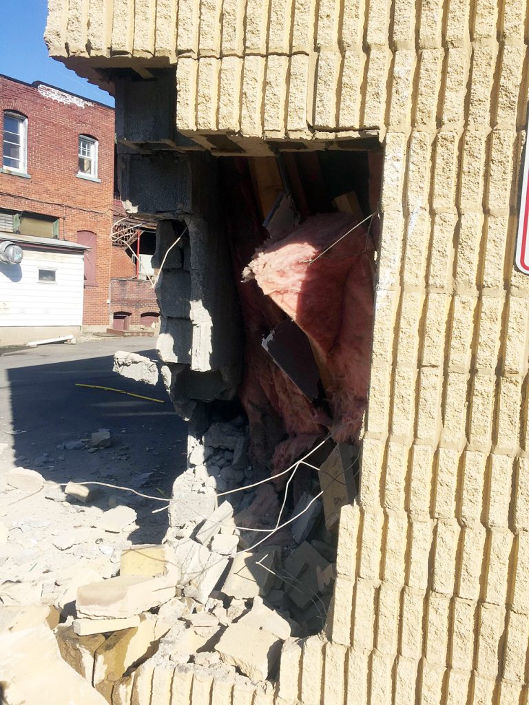 K2 Engineering was called to inspect the building. A construction crew is working to stabilize the building to prevent collapse or further damage.