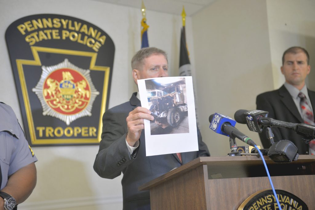 A witness told state police the tri-axle passed her and two vehicles in front of her “at a high rate of speed” on McClellandtown Road where two lanes merge into one. She said it crossed the double yellow line several times, and at one point about 3/4 mile from the crash site, it was completely in the opposing lane of traffic, according to the affidavit.