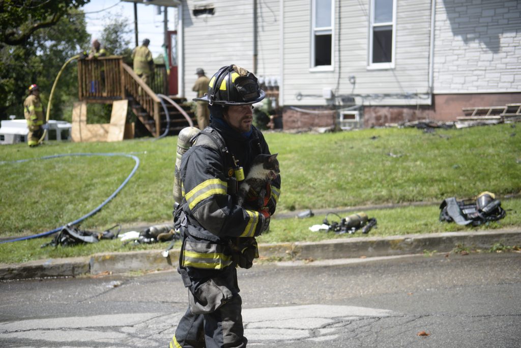 “Hey, wait a minute, does he have a cat?” he shouted, rushing to the firefighter.