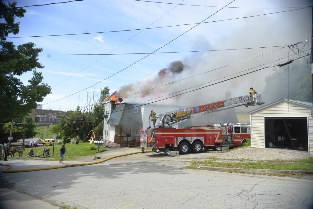Uniontown Fire Department Lt. Scott Conn said the fire presented a challenge because it reached void spaces in the house. “Balloon frame building” is a common feature of older buildings, which can create hidden fire trapped in the voids.