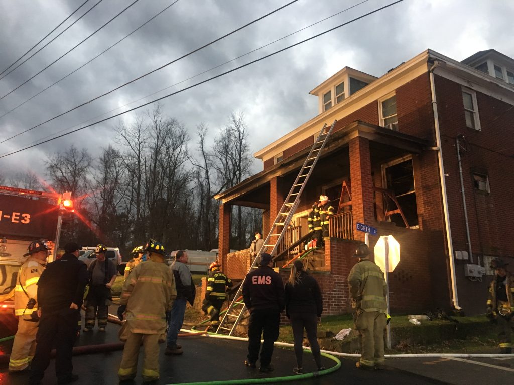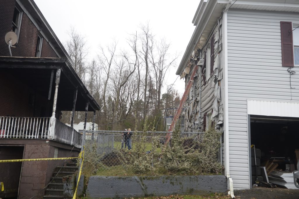 The house was divided into two apartments, with one family upstairs and a second family downstairs. The men living in each apartment were brothers, according to neighbors. Their parents lived in the house behind them on Eighth Street, which was also damaged due to intense heat and shooting flames.