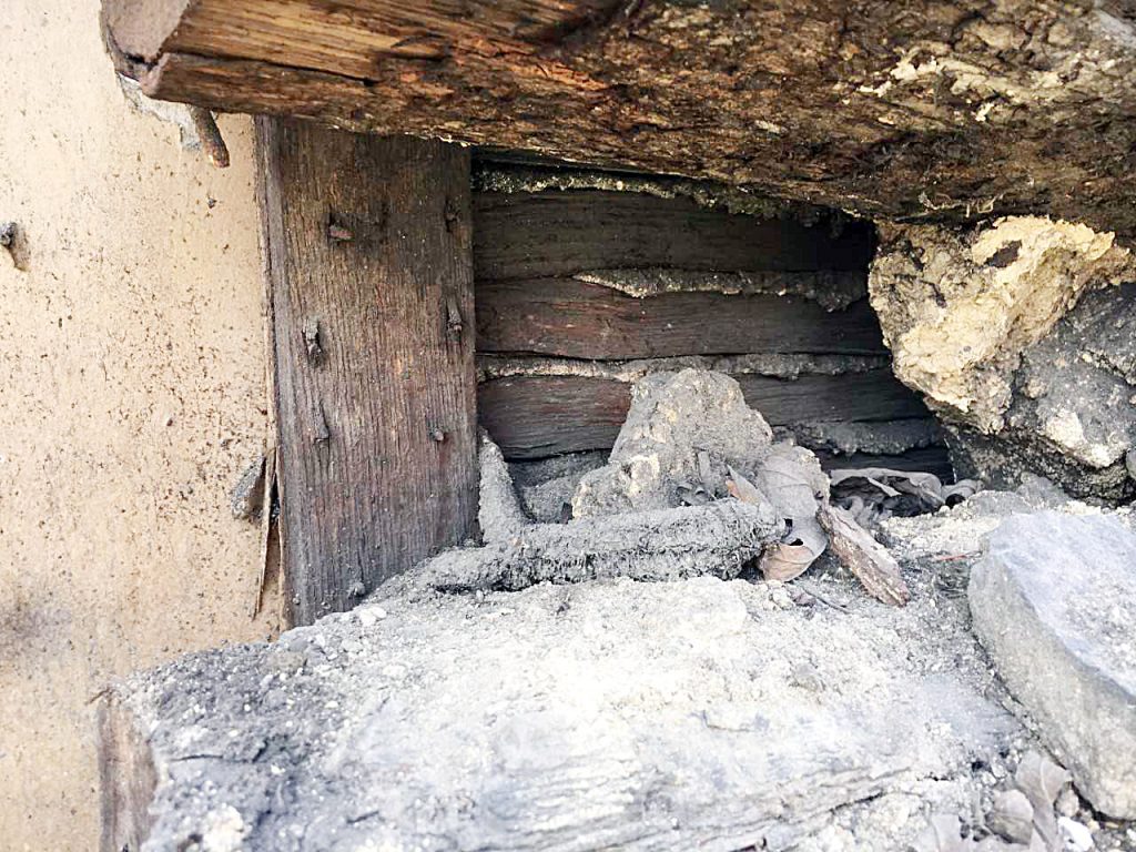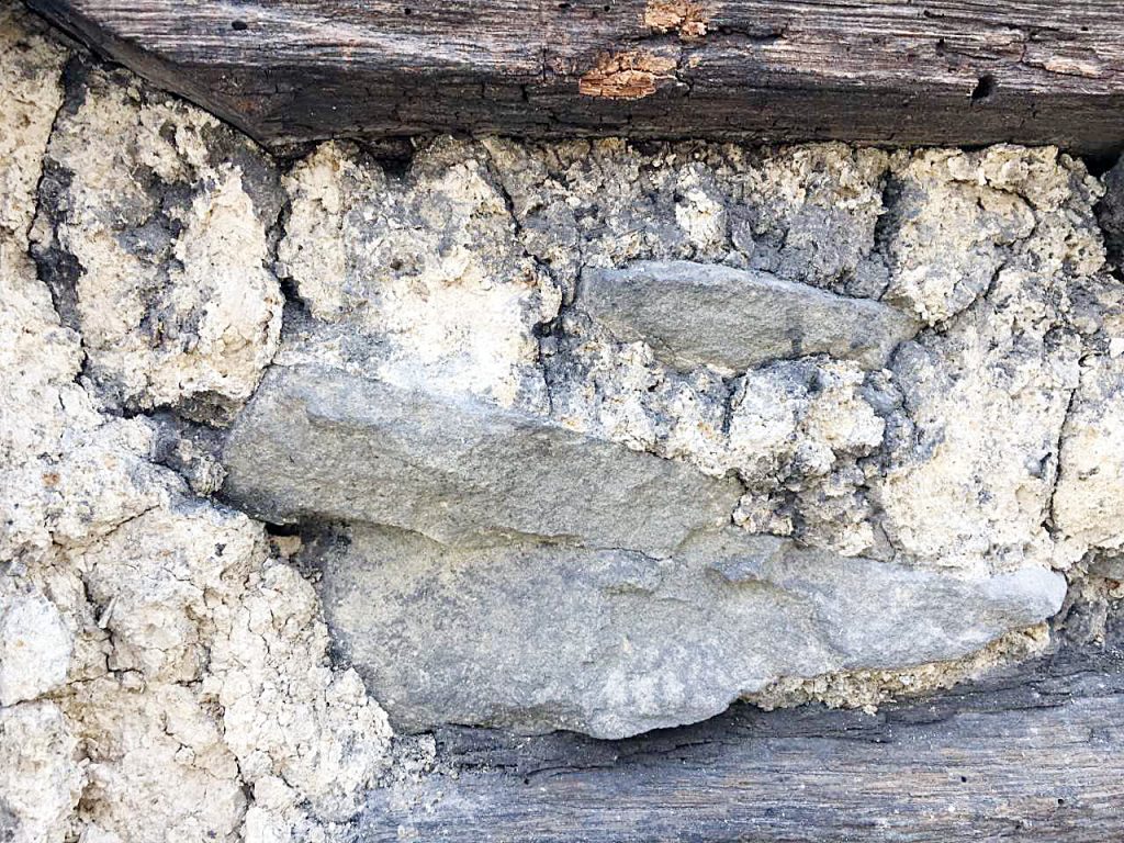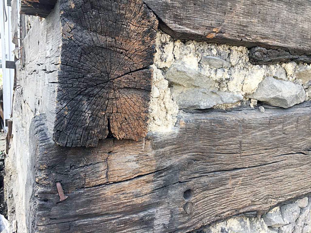 A close-up of the building materials in the early 19th century log house, recently discovered in Brownsville.