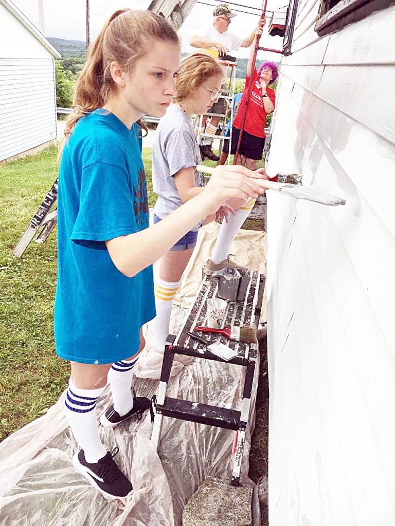 Altogether, about 500 volunteers will help about 40 qualified homeowners in two, back-to-back, week-long camps in late June throughout the AG School District. Youths are painting, replacing flooring, building ramps, porches and steps, adding a second exit and two houses are getting new roofs under the guidance of experienced maintenance and home repair volunteers.