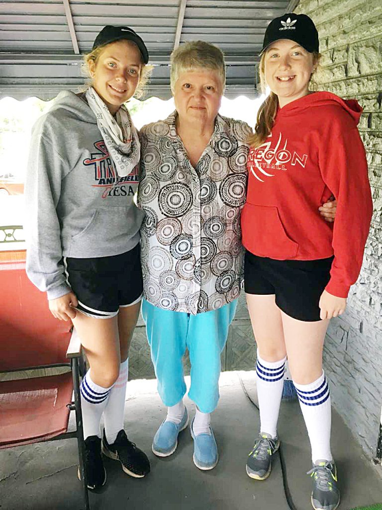 Homeowner Barbara Carafa, of German Township, poses for a photo with Reach Mission Trips volunteers Lexi Ebert, left, and Olivia Thomas, both of Illinois. In addition to providing free basic repairs to qualified homeowners, the work camp is about building relationships. Carafa said, “EveryoneĢƵ fantastic. They’re a wonderful group of kids.’’