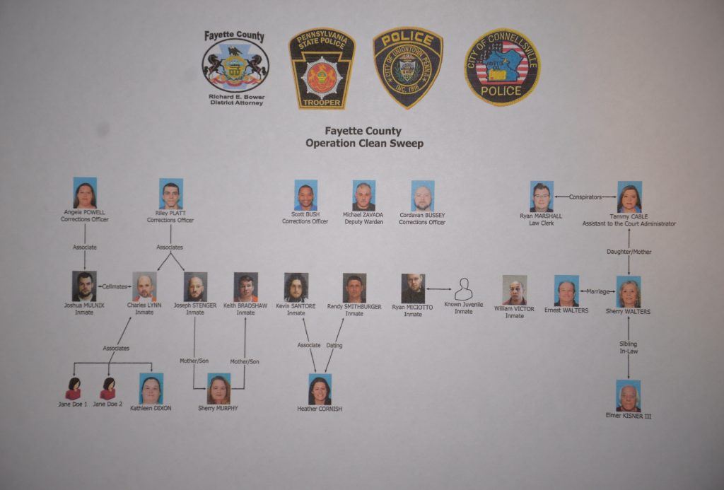 The seven-month investigation, dubbed “Operation Clean Sweep,” was conducted by the Fayette County district attorneyĢƵ office, the state police Bureau of Criminal Investigation, Uniontown City Police and Connellsville Police, with the support and assistance of other law enforcement and government organizations, including the Fayette County Commissioners. Many of the charges are related to contraband in the Fayette County Prison and drug dealing inside and outside of the prison.