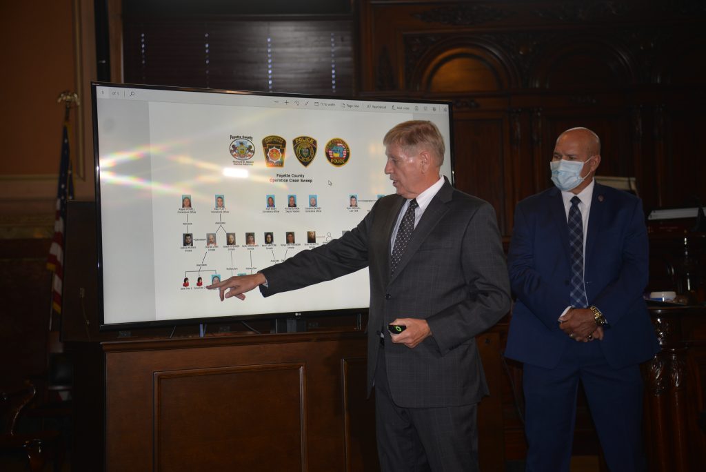 Fayette County government and county prison officials were among 30 indicted by a grand jury after the discovery of alleged corruption and a drug ring, county District Attorney Rich Bower announced Thursday.