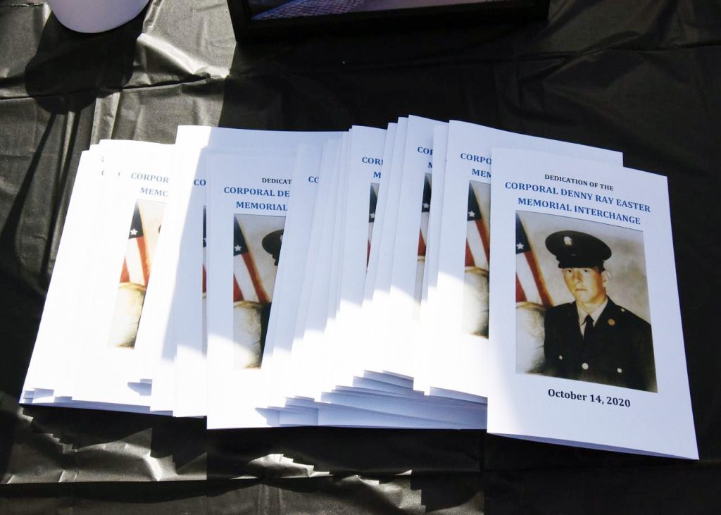 U.S. Army Cpl. Denny Ray Easter was immortalized in his hometown after a dedication ceremony with local officials, and the sign for the Corporal Denny Ray Easter Memorial Interchange was unveiled.