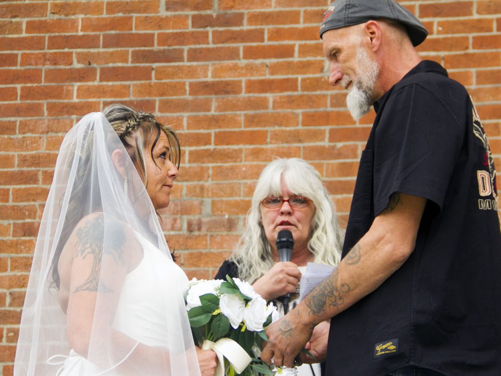 Their own take on a dream wedding started promptly at 2 p.m. Saturday outside of the Greene County Courthouse, with Alma Gray, JayĢƵ sister, officiating. His father, Jay Sr., and LillyĢƵ mother, Mary Marion, stood by their side as they exchanged vows in front of an enthusiastic group of family members and friends, most of whom dressed for the occasion in gear representing the motorcycle that made Milwaukee famous.
